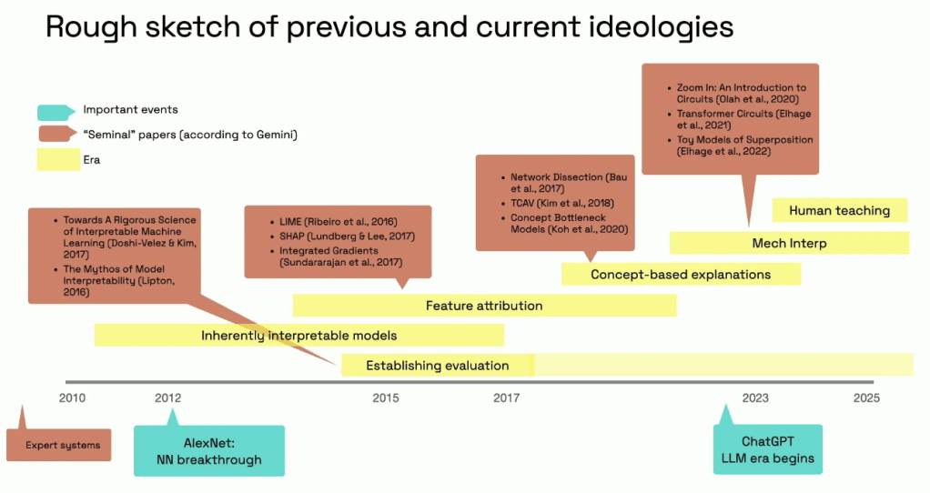 I want to have this discussion by juxtaposing the opening and closing talks of the workshop. The opening talk was by Been Kim on “15 years of research in interpretability” and the closing talk was by Chris Olah about “reflections on mechanistic interpretability”. But before contrasting them, I want to spend a moment on what I think are some of the major takeaways from these talks by two titans in the field of interpretability.